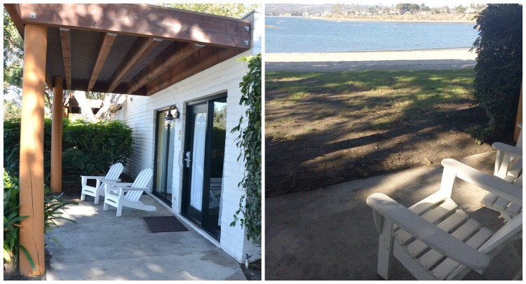 We checked in to our bayside bungalow and were impressed by our own private parking spot. We drove right up to the bungalow and couldn’t wait to start enjoying the Mission Bay view. Each bungalow has a private patio with access to the sandy beach.