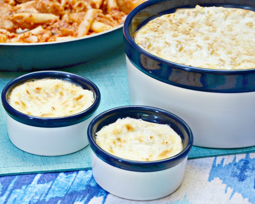 The parmesan ricotta dip will be browned and bubbly. Allow to cool before serving.