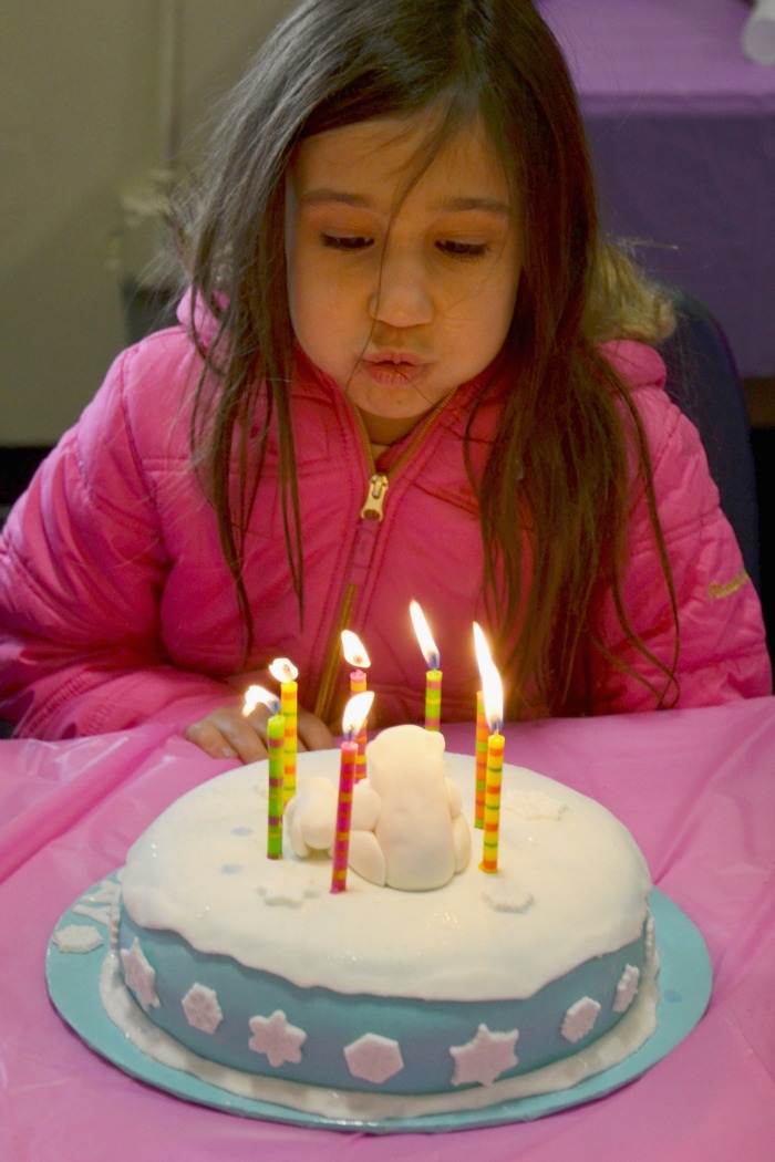 Following the game we sang to my daughter and served cakes and cupcakes. The polar bear cake was made by Christie, a friend that also made my daughter’s 5th birthday creepy crawly party madagaskar cockroach cake, our Disneyland party and family game room debut cake, my pink and gold baby shower cake, and a few others.