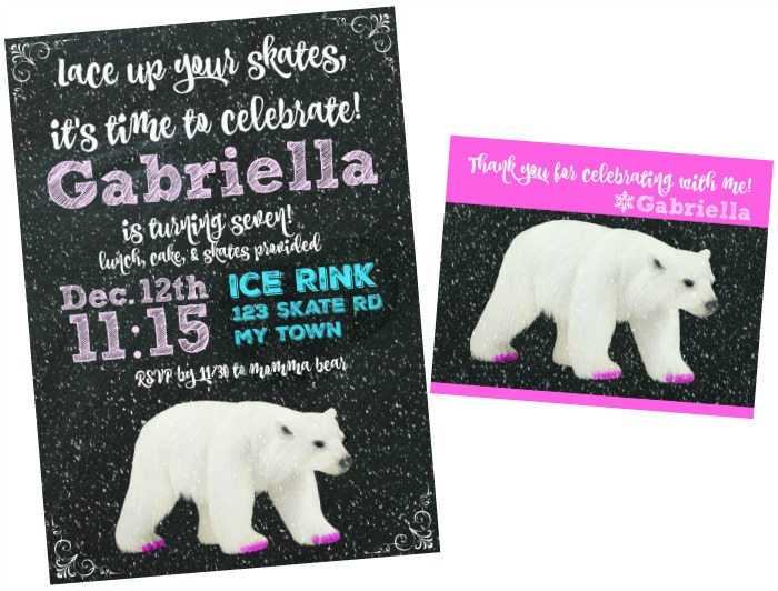 I created invitations and thank you cards using a free polar bear clip art image and some quick editing on PicMonkey.