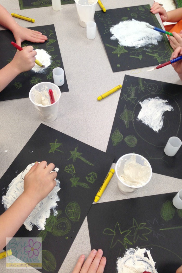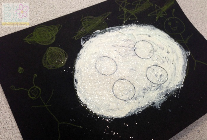 The children in my classroom love glitter so we added a little sparkle to our preschool science moon craft.