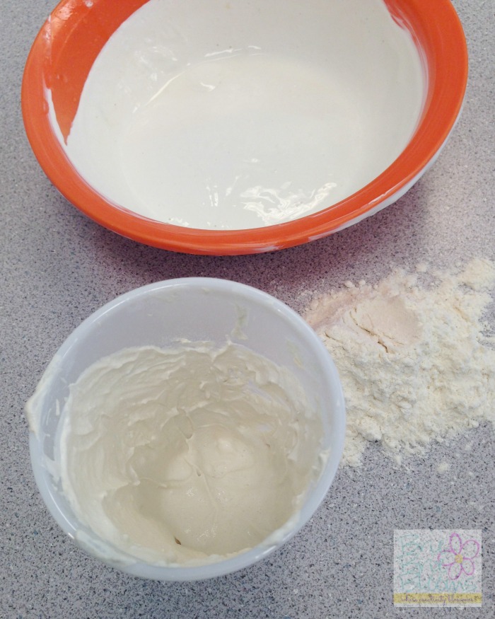 Prepare the textured paint by mixing 1/4 C white paint with 3 TBSP flour.
