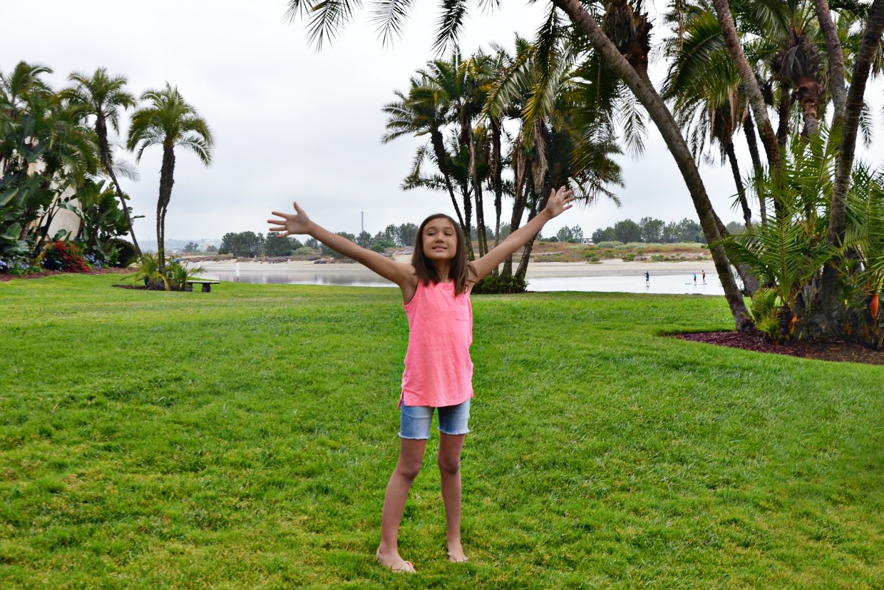 Playing tag on the beach, walking through theme parks and gymnastics in the grass keep our daughters active during California summer travel.