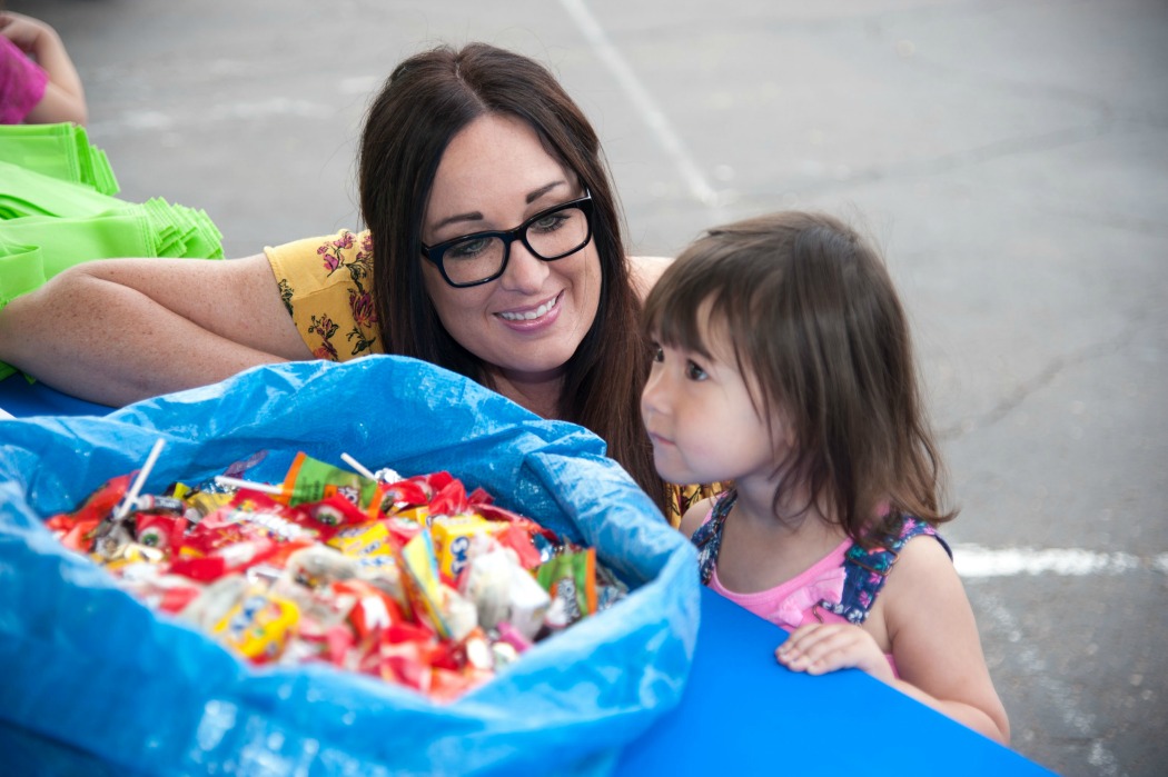 Making smart snack choices is easy when your home is full of the right options but with the holidays in full swing, it’s easy to get comfortable in the alternative. Blue Cross Blue Shield of Arizona’s Nourishing Arizona Homegrown Healthy campaign is helping our community learn about the benefits of eating fresh produce and providing the opportunity for every family to take home items from farmer’s markets like we did at the Sugar Swap. We recently visited the Sugar Swap to exchange our Halloween candy for Homegrown Healthy Bucks. Little sister wasn’t sure why she was handing over her giant bag of candy but listened intently as we learned age appropriate facts about the differences between sugars found in treats and the healthy sugars found in fruits and vegetables.
