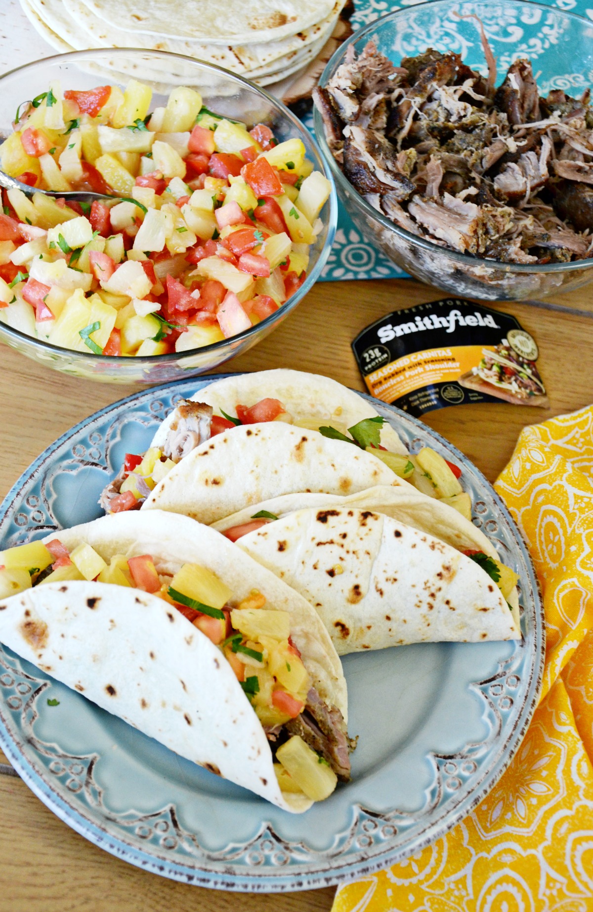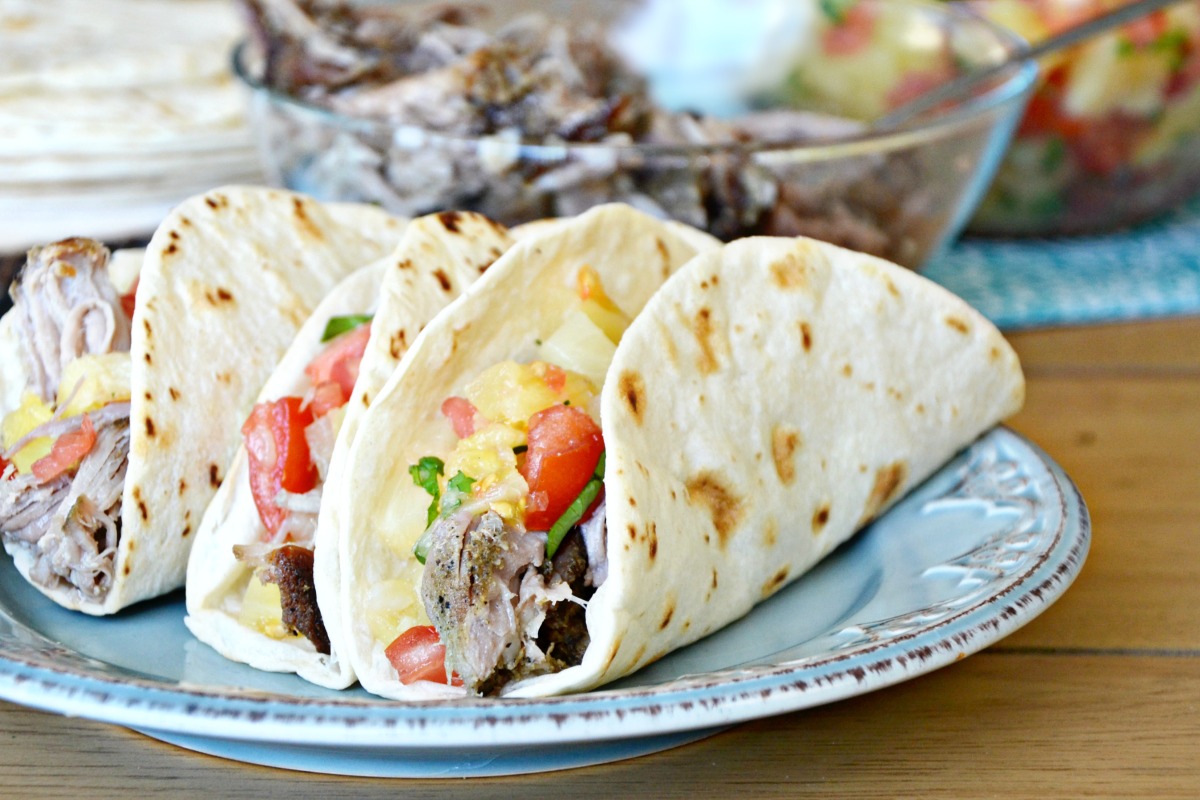 Tacos are a staple meal in our home but we rarely have them with more than traditional toppings. My oldest daughter loves a cottage cheese and avocado mix on hard chicken tacos but found a new summer favorite in our soft pork tacos with pineapple salsa.