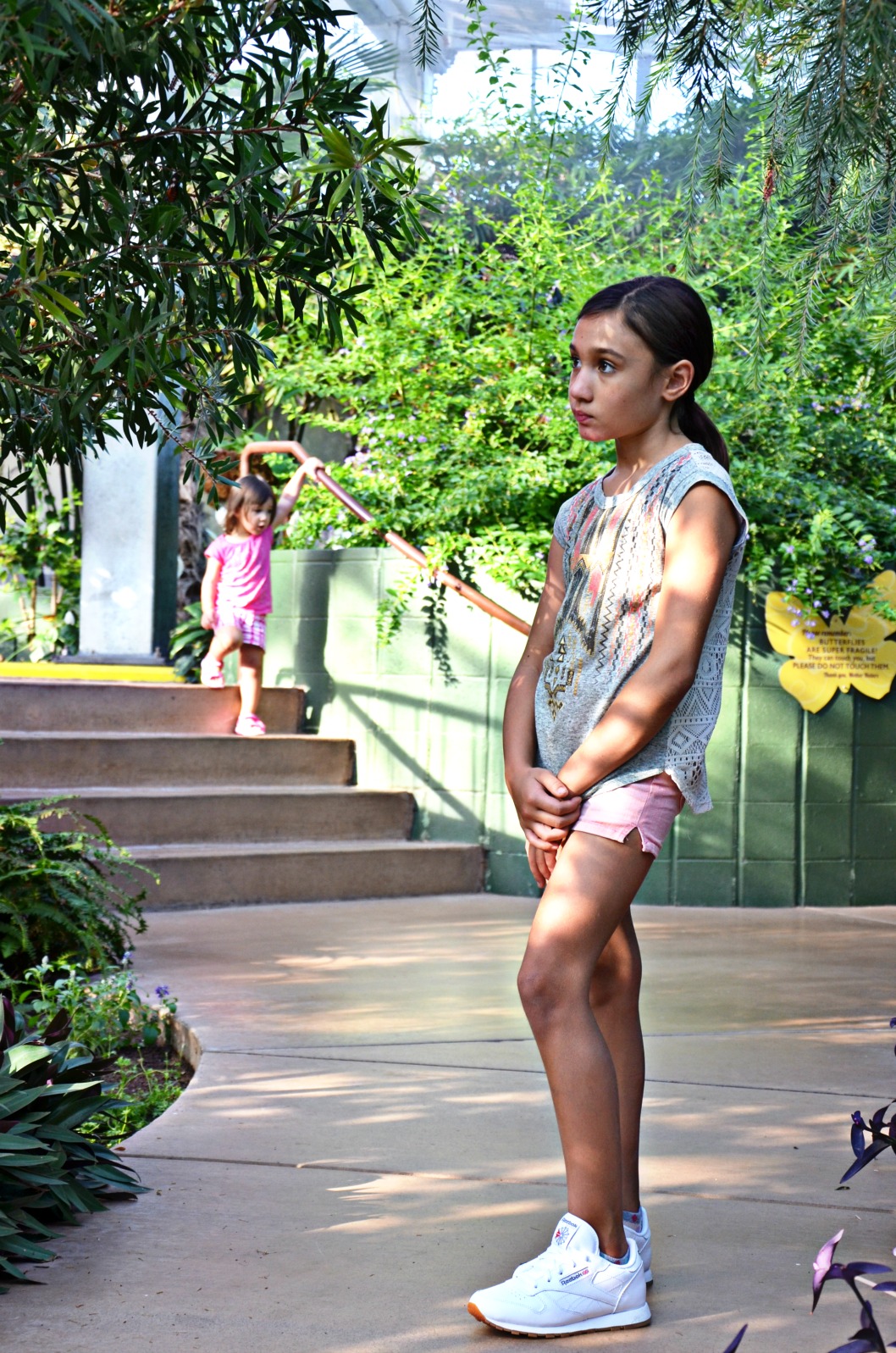 We went straight from school pick up to see the butterflies so she was wearing shorts, a comfy top and her everyday Reebok Classics.