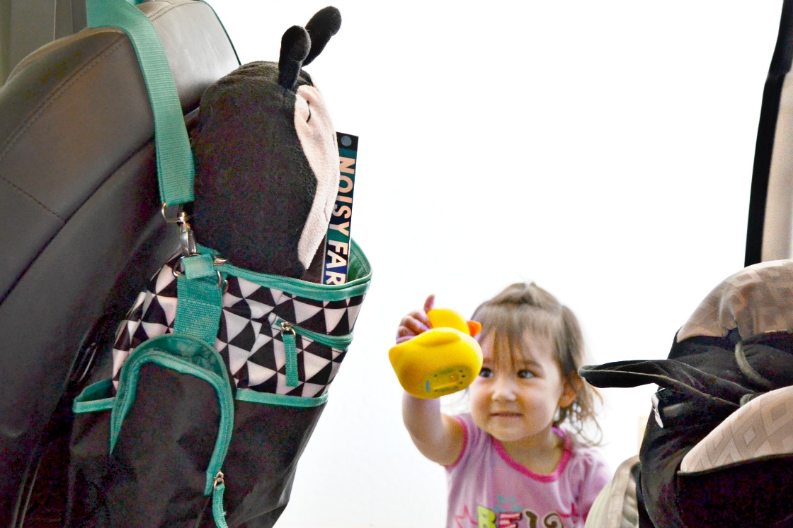 I have bags that I bought from Thirty One for the sole purpose to hang on the back of the front seats, so that my girls can cram them with whatever they need/want on car trips!