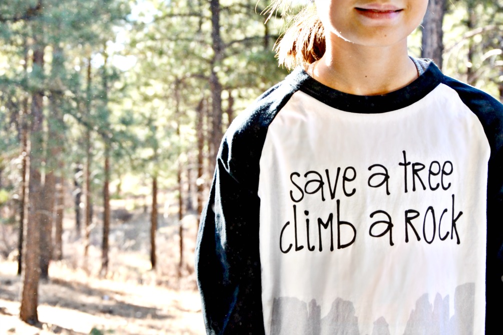 We do so many crafts at our house and often make shirts for holidays and events. I own my own t-shirt press and have enough vinyl in my office to make anything my daughters ask to create. Our recent move has been so time consuming and I was very disappointed when my eight year old daughter reminded me she had asked for a very specific rock climbing shirt with plenty of notice before a big out of town rock climbing competition in Flagstaff, Arizona. Instead of frantically trying to unbox the rest of my office to find all my shirt making supplies, I turned to DesignAShirt.com where I easily uploaded my design and had a new shirt for my daughter delivered to our doorstep in less than a week. She was so excited to wear her new rock climbing shirt last weekend to a bouldering competition in Northern Arizona. The higher elevation is a favorite place to visit because of the cooler weather and beautiful scenery.