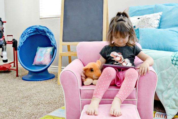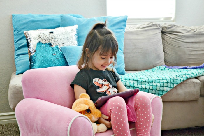 My 5 year old would have a phone or tablet permanently fixed to her hand, if I let her. We limit her to an hour a day and try to find ways to get her imagination going around the house and outdoors. I am not against it… she learned her shapes and colors on an app! But I found that she totally spaces out when there is a screen around.