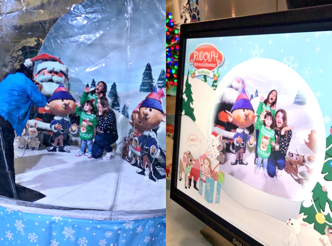 There are photo opportunities all throughout the park with many of your favorite characters like Rudolph the Red Nosed Reindeer, Bumble and more. There are also areas to pose with your favorite character props while waiting to see the live characters. The snow globe photo is an opportunity to be photographed inside a real snow globe. Last year we took the same snow globe photo with my daughters and their Southern California bestie, Over the Top Mommy‘s daughter. I look forward to continuing this tradition every year as they grow.