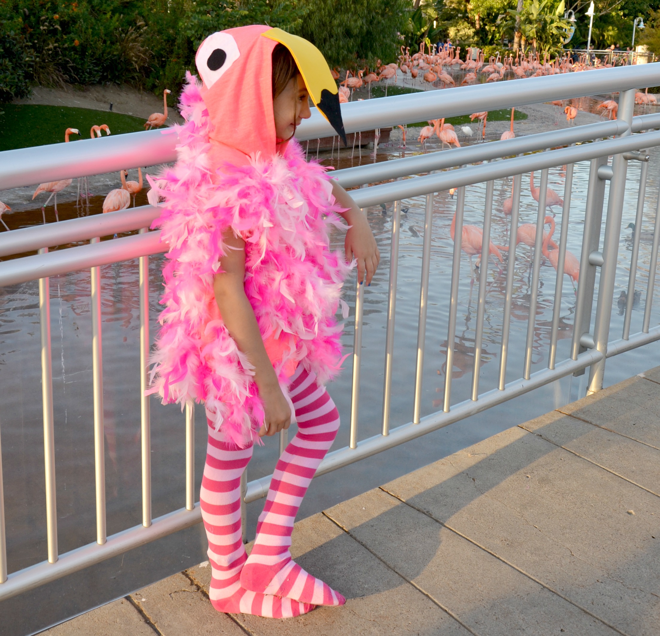 Both my daughters dressed up as flamingoes for the Halloween Spooktacular. My daughter, the SeaWorld guest kid blogger, shared her easy DIY flamingo costume tutorial on the SeaWorld blog soon!