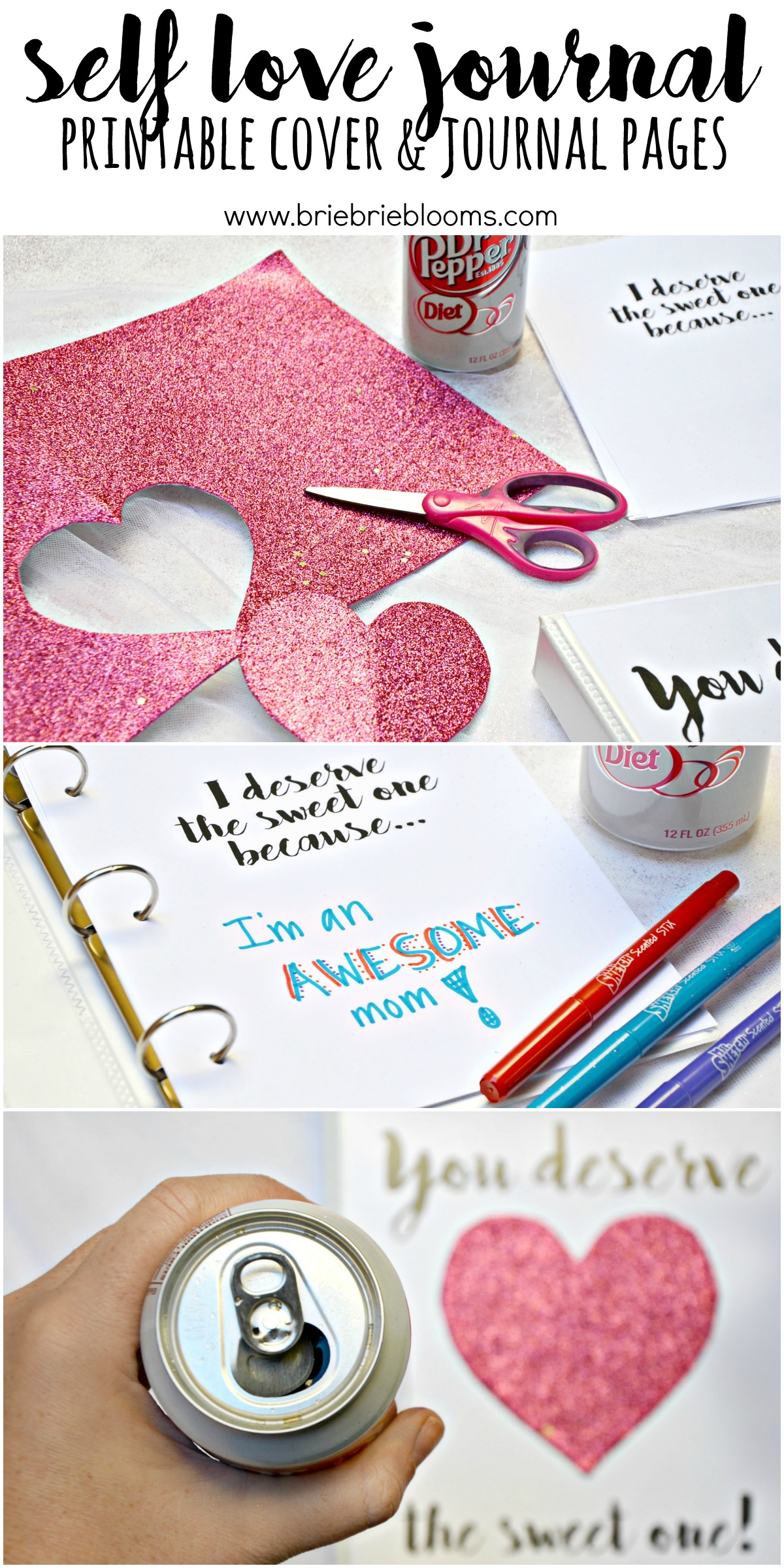 Let’s be real here, penciling in any amount of time for yourself is hard. I prefer spontaneous afternoon breaks instead, like when baby sister is napping, everyone in my house actually went to sleep at their bedtimes, or my children are at activities while my husband has a late day at work. Those afternoon breaks are so important! Combine the sweet taste of Diet Dr Pepper with an awesome free digital adult coloring book brought to you by Lil’ Sweet, and make yourself this self love journal to make sure you always have the perfect way to spend a quick afternoon break.