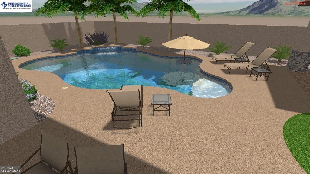 Presidential Pools came to our home to evaluate our yard then shared a few different 3D plans with us. We love the design we chose and how easy it was to imagine the completed project.