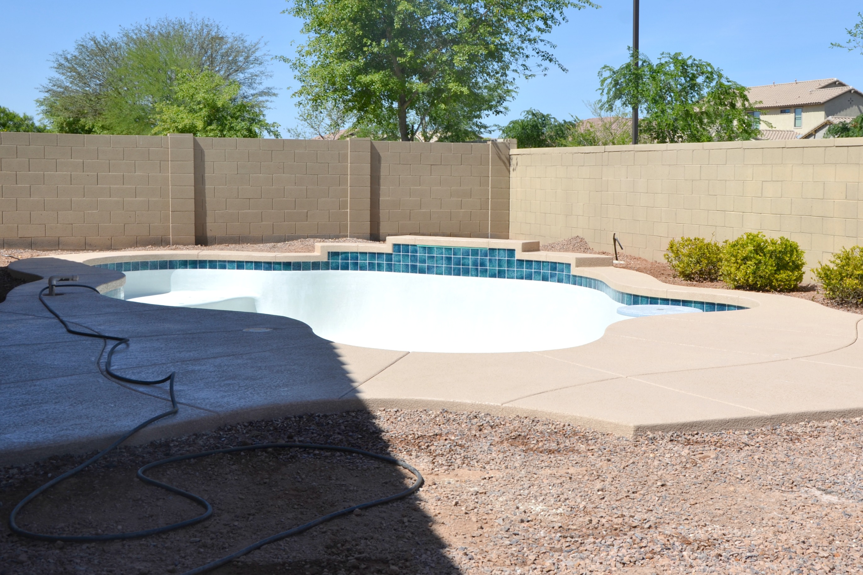Exactly six weeks from the actual construction start date, we were filling our pool with water and learning the daily salt water maintenance.