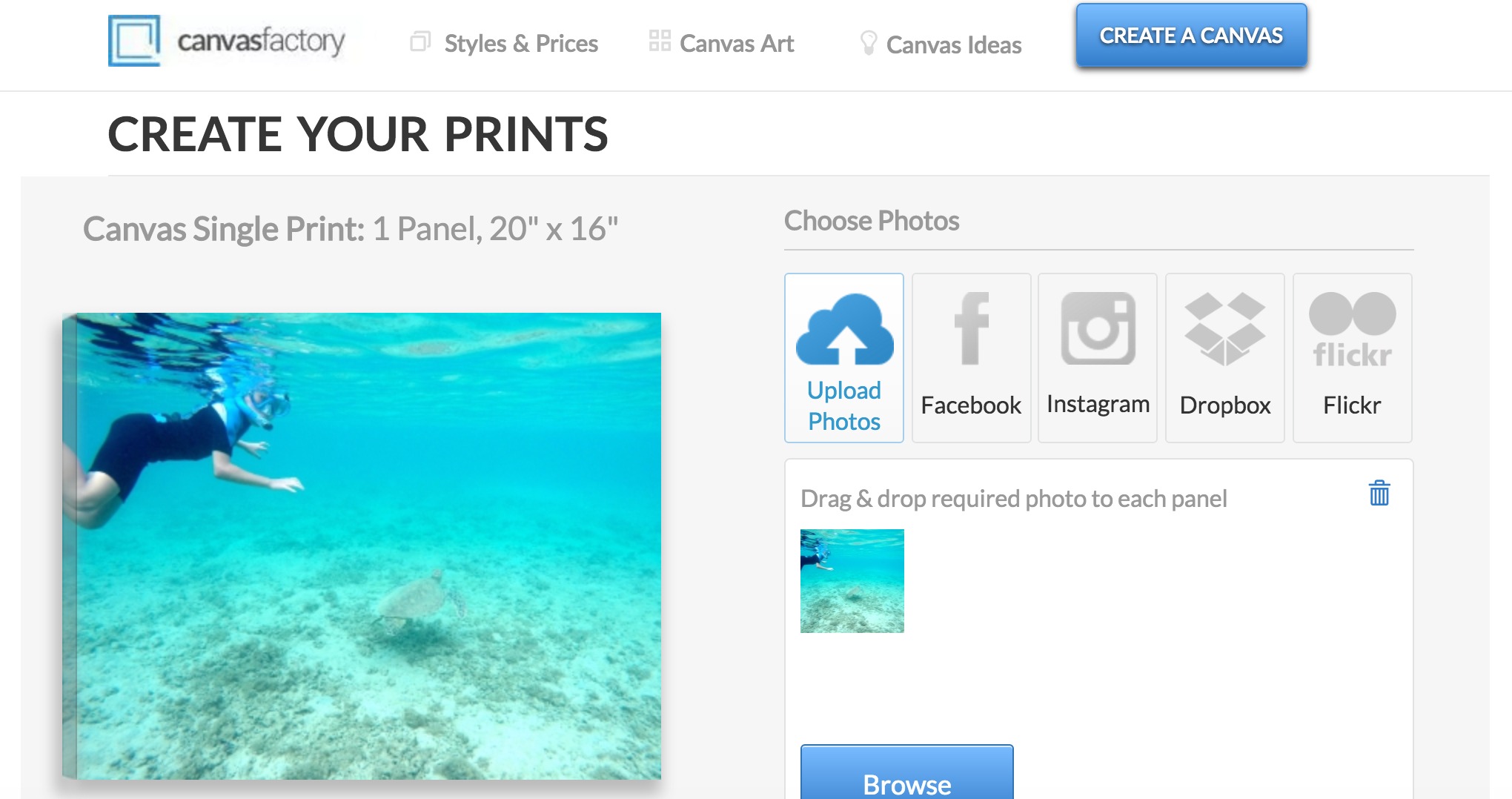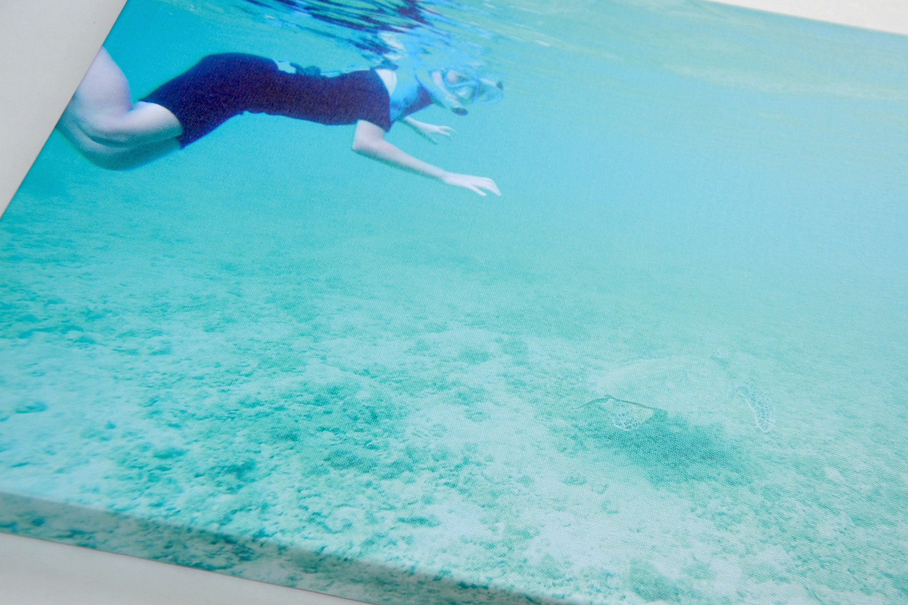 My husband used his GoPro to capture amazing video of our daughter with marine animals. We came home and turned a favorite photo into a canvas with Canvas Factory. The process is very easy and inexpensive.