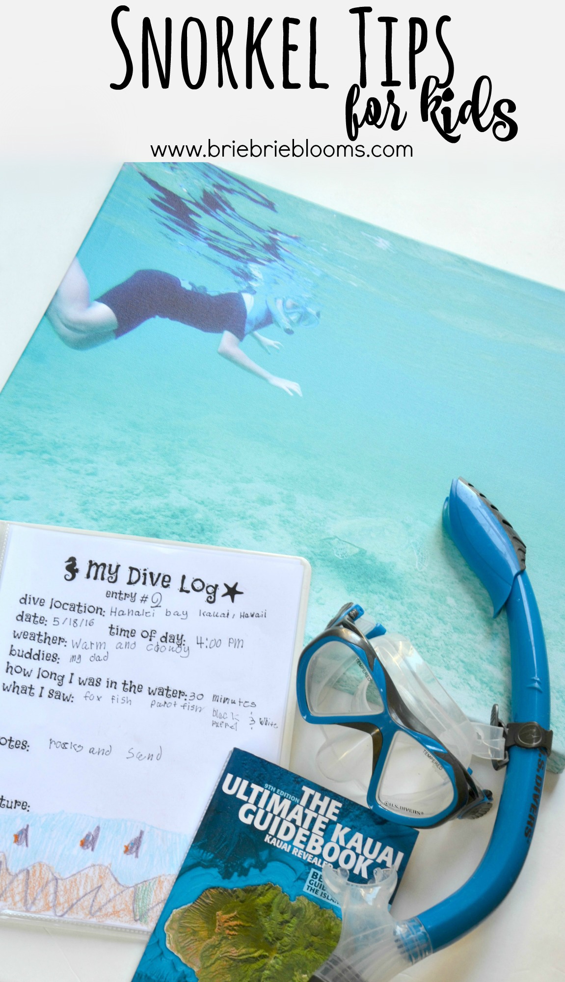 We planned our visit to Kauai, Hawaii with ResorTime for several months prior to the family vacation. We knew we would be attending the Na Pali Coast Snorkel Tour with Holo Holo Charters and with the abundant marine life in the Hawaiian waters, wanted to be fully prepared for many snorkeling adventures on our own too. Our seven year old daughter had never snorkeled in the open ocean so we sought out tips from a favorite marine biologist friend. In addition to basic snorkeling safety, he had a few great suggestions we would not have thought of otherwise. Our favorite list of snorkel tips for kids does not detail safety tips so please make sure you take the time to research tide predictions and the areas in which you plan to snorkel. Our best snorkel tips for kids share how to make sure you have a positive and memorable experience like we did during our Hawaii family vacation. We came home and ordered our most favorite snorkeling photo on canvas from Canvas Factory. One lucky Brie Brie Blooms reader will win their own canvas of a favorite family vacation photo too!