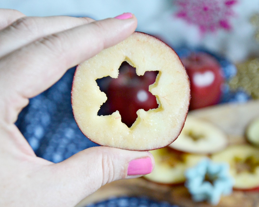 You’ll also need a snowflake cookie cutter. Depending on the size of the apples, you can use a variety of sized cookie cutters.