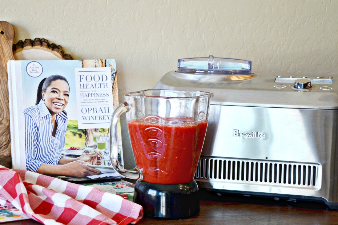 Oh hi, I’m just over here soaking up the final days of summer enjoying the same cold comfort food Oprah makes on her most stressful days. Of course I’m kidding, Oprah doesn’t have stressful days. Okay fine, maybe I just followed a Strawberry Sorbet recipe from Oprah Winfrey’s Food, Health, and Happiness Book but it’s so tasty I bet Oprah really does whip this up to enjoy at her home too. The Breville Smart Scoop arrived at our home a few weeks ago and we’ve been making homemade cold treats daily. It’s our favorite tool in the kitchen and by far, the best ice cream maker we’ve ever owned. You too friend, can sorbet like Oprah.