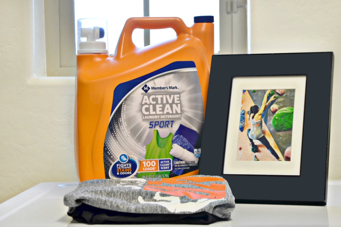 Bouldering season has officially ended for our nine year old daughter but we are excited to cheer on her teammates participating in the upcoming rock climbing bouldering nationals competition. At just nine years old, she did fantastic this season and is excited to continue participating in a sport she truly loves. While in season she attends two team practices weekly for several hours each and has multiple personal climb days along with private lessons some weeks. On her off days she’s doing other physical activities like attending a Ninja Warrior training class weekly, playing at the park, rollerblading, bike riding, hover boarding and anything and everything in between. With so many physical activities, her laundry pile grows fast with clothes that shouldn’t be sitting in her hamper for long. Member’s Mark® Active Clean™ Scent Detergent at Sam’s Club attacks the toughest stains and odors while helping me maintain an easy laundry routine. My sports mom laundry tips are how I keep our house from being overcome by sports laundry and it ends up staying in tip top shape for those many practices and competitions.