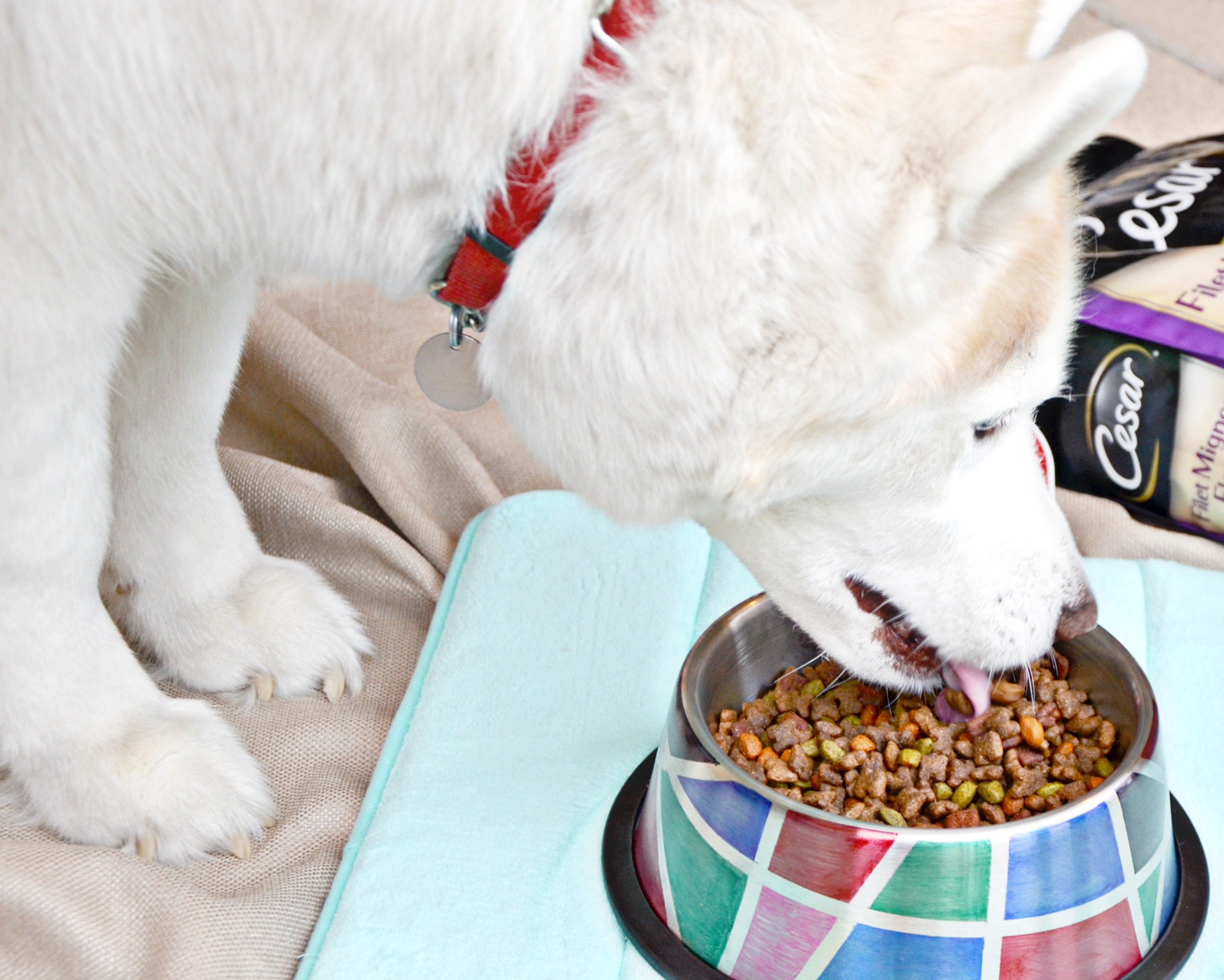 Our dog Sophie, a beautiful Siberian Husky, has been a very picky eater from the time we brought her home as a puppy. Now, at nine years old, her eating preferences have not changed and we have tried every suggestion to convince her to eat dry dog food. Mix ins like baby food, shredded chicken and shredded cheese are her favorite but instead of adding our own people food, we would much rather prefer she was eating her own food. She’s been loving her new CESAR® Dry Filet Mignon with spring vegetables and CESAR® Pate Mixed Variety Pack from Walmart. We’ve been mixing the two together at dinnertime and our very vocal Sophie hasn’t complained. CESAR® lets you feed your dog like family, but keep them healthy at the same time. The DIY Stained Glass Dog Food Bowl is a fun way to serve Sophie’s new favorite meal.