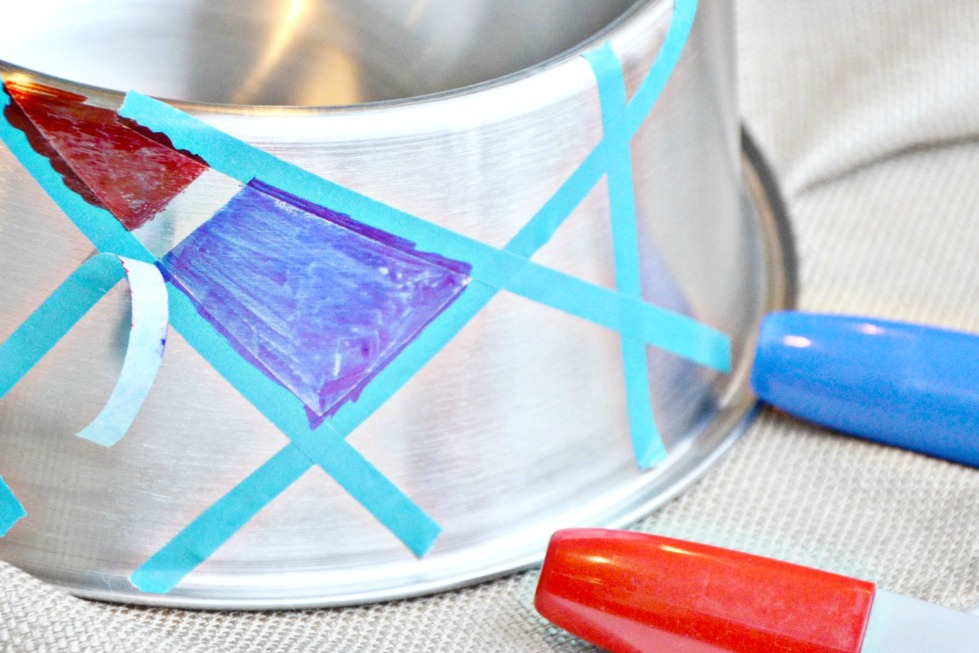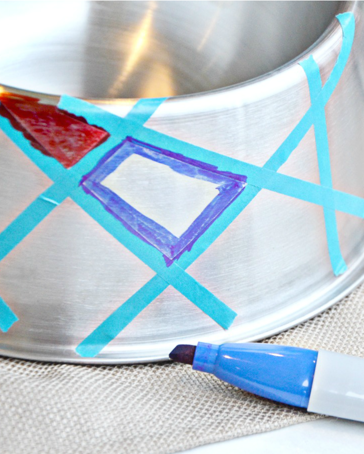 Peel the washi tape off the bowl when you have colored all the open shapes.