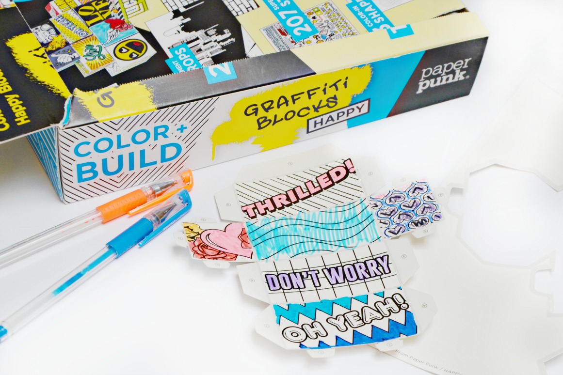 The Graffiti Blocks let you color, fold and build a graffiti wall without scissors or glue.
