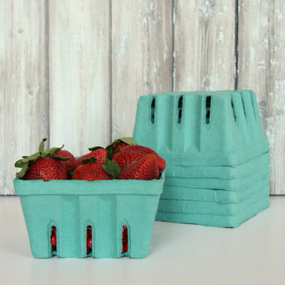 There are so many fun things you can make with berry baskets. They can be incorporated into party themes or used as thank you gift holders. The TomKat Studio has so many great ideas and was so sweet to share a pretty turquoise one (my FAVORITE color!).