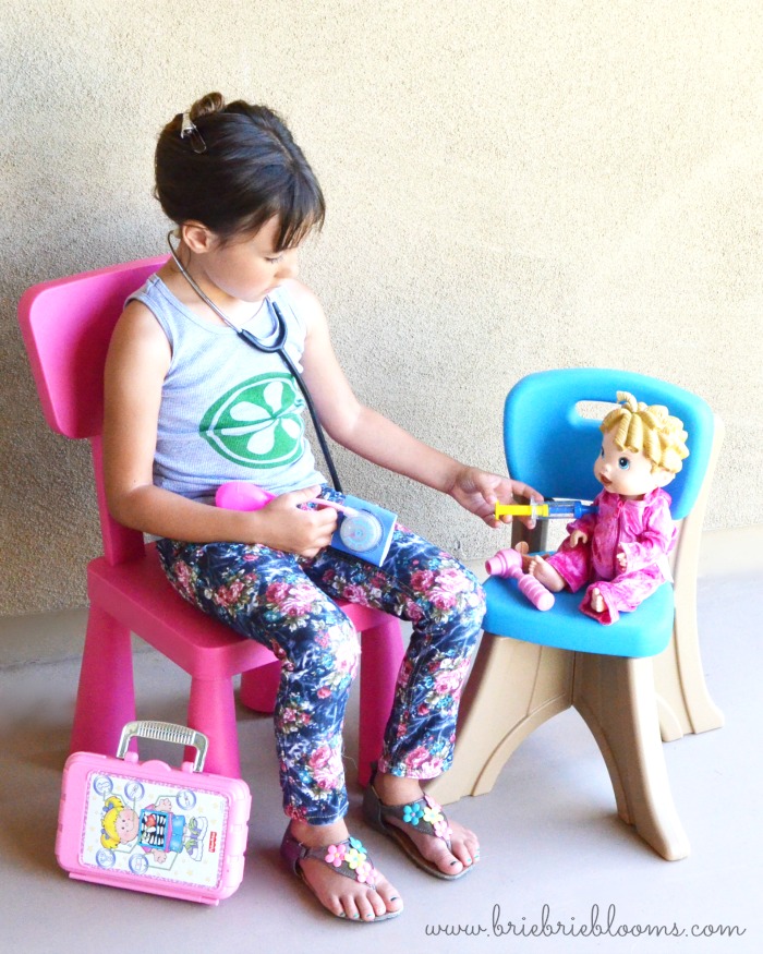 When I noticed my daughter playing with her dolls and a doctor kit recently I wondered what she was doing. As I listened to her imaginative play, I overheard her telling the dolls they all needed their shots to go to kindergarten. My daughter is going to kindergarten in just a couple of weeks so back to school vaccinations have been a hot topic in our house. She knows about vaccinations and why she needs them to stay healthy but she doesn’t know about all the children without access to a healthy Shot@Life. I sat down to play with my daughter and her dolls to teach her every child in the world deserves a healthy shot at life with global vaccinations. We had fun drawing a globe with chalk and talking about the Walgreens Get a shot. Give a shot® campaign and how we can help children in need.