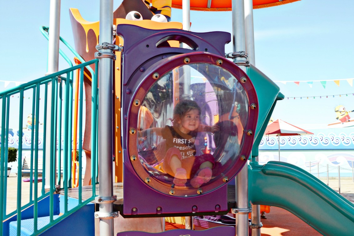 The elaborate play zone is located directly next to the Despicable Me Minion Mayhem attraction so this is where little sister played while we were swapping time with her big sister. Rides, water play, playground and video games make this play zone a toddler favorite.