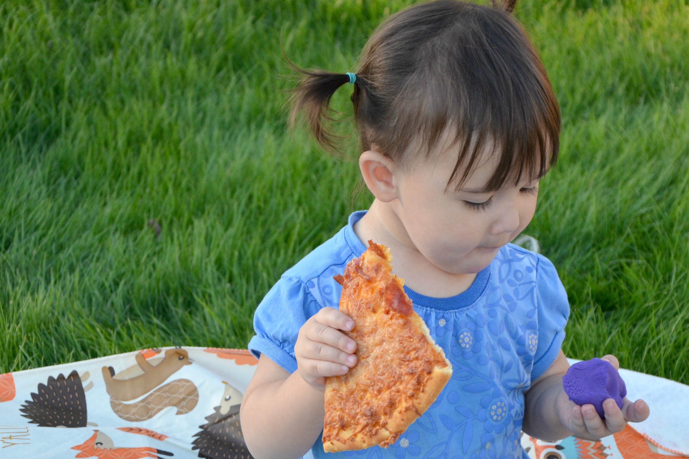 A little fresh air is just what our family needed! Our daughters had fun playing and eating pizza on a day we would have alternatively stayed inside if baby sister didn’t have a dose of the Little Remedies® Honey Cough Syrup. Our spontaneous picnic at our neighborhood lake was a perfect way to spend the afternoon.