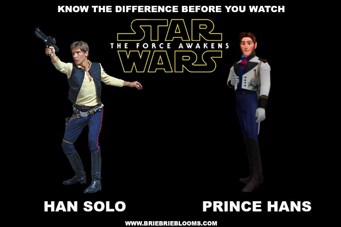 Don’t mess this up – Han Solo is in Star Wars; Prince Hans is not.