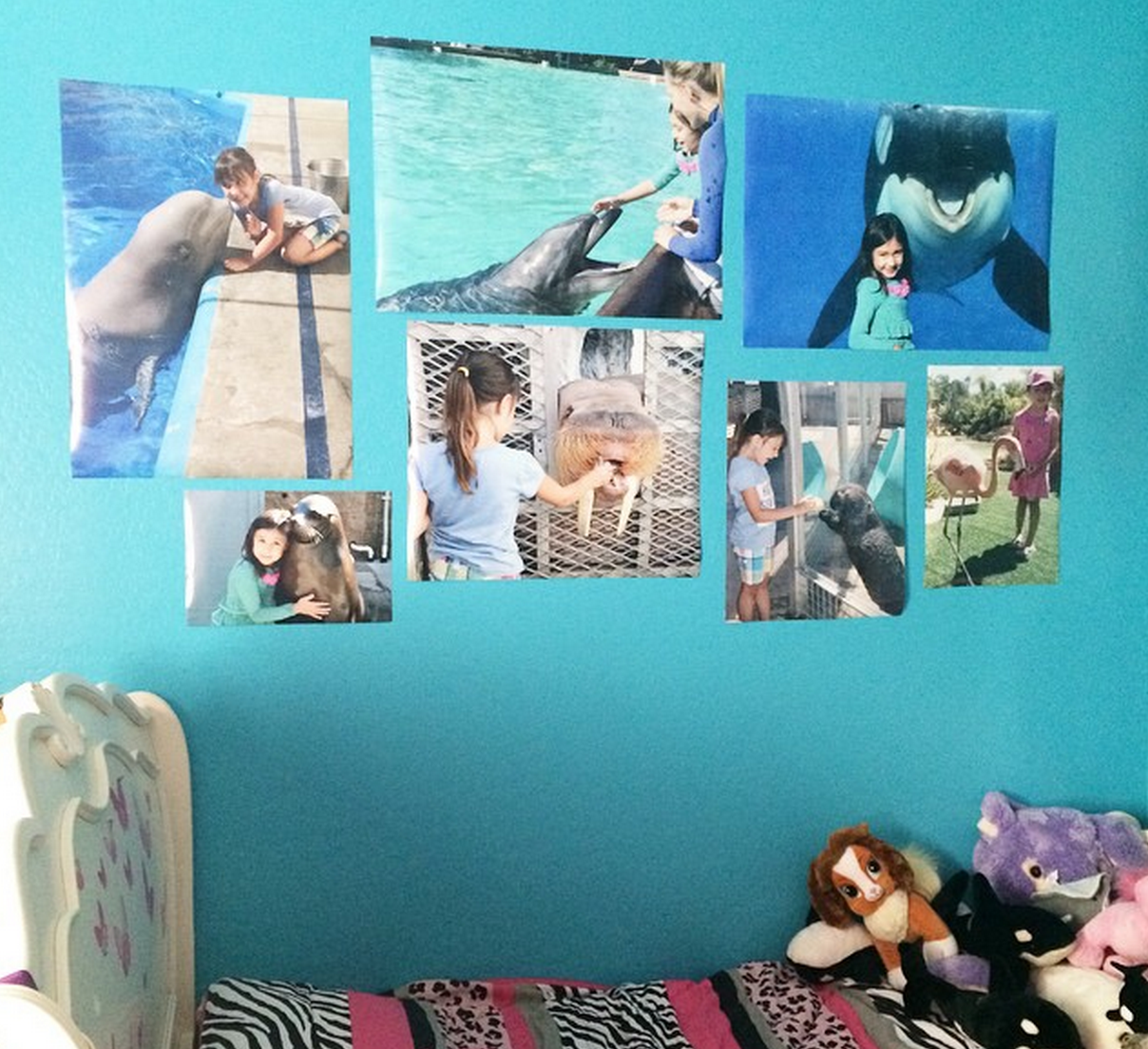 She has been very excited to help with the nursery but my daughter has asked if she is getting a new room too. While completely making over her bedroom wasn’t necessary, we did rearrange furniture and hang new posters. Her ocean animals birthday party decorations were the perfect accessories for a new bedroom.
