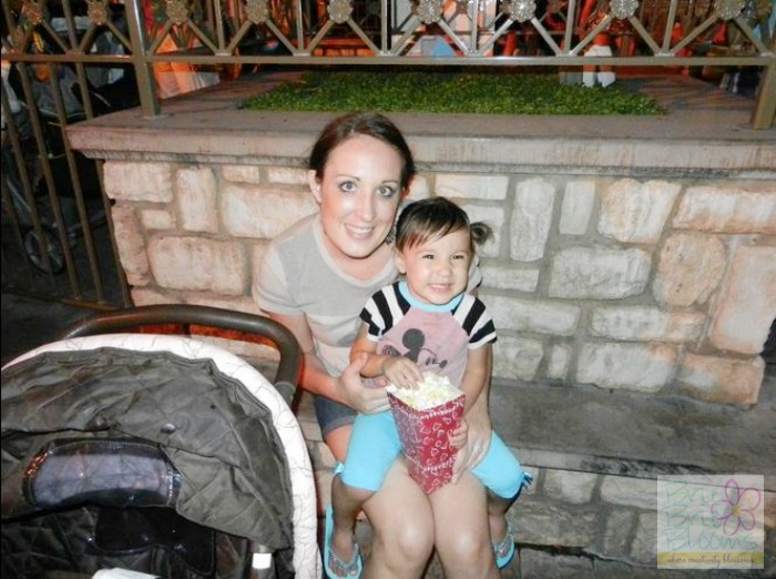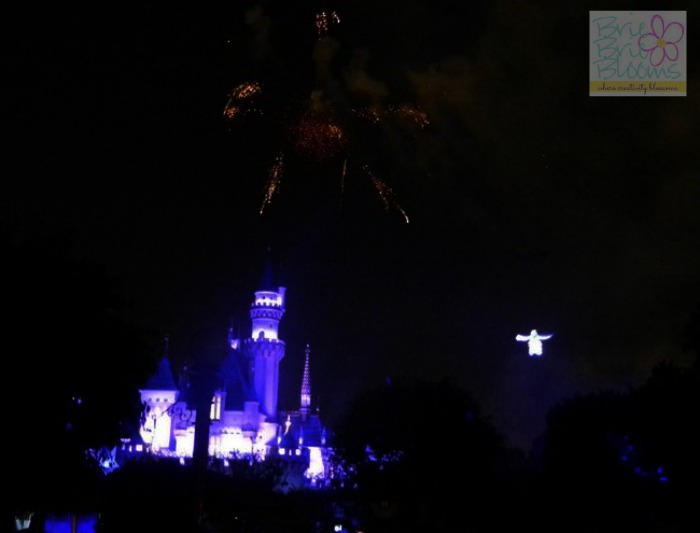 There are a few ways to view the Disneyland fireworks. You can sit on the ground close to an hour before the show starts in front of the castle for the best view. We have done this a few times and it was absolutely worth the wait. We bought corn dogs and popcorn before we sat down. My daughter loved seeing Tinker Bell and Dumbo fly over the castle!