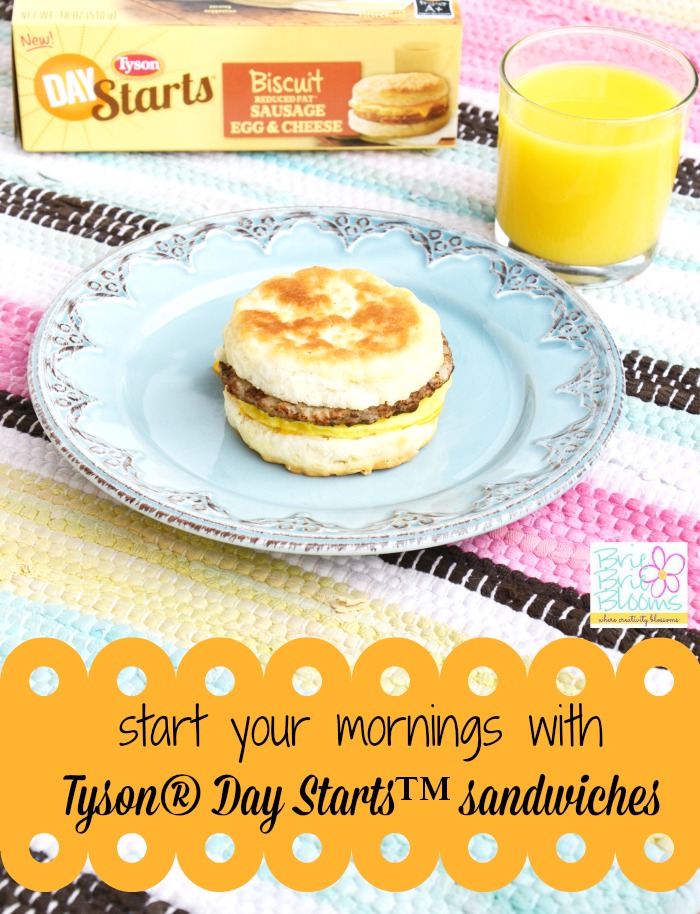 Sometimes getting our family out the door in the morning is the most challenging part of my day. I work early in a preschool classroom and my sleepy head daughter isn’t always excited to wake up early to get ready for school. Breakfast is such an important meal for children and I try my very best to make sure my family isn’t rushed while eating their first meal of the day. New Tyson® Day Starts™ sandwiches makes it easy to get your family to sit down together for breakfast before heading off to work and school.