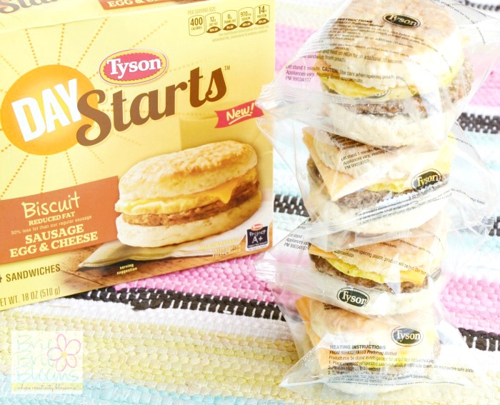Our family enjoys meals with Tyson Foods products regularly and I’m excited to see a new breakfast item. Last year my daughter’s favorite quick morning meal was breakfast bread bowls. She’s also a big fan of the gluten-free chicken mac and cheese I made using Tyson Foods products. I recently purchased two different Tyson® Day Starts™ sandwiches to serve for breakfast during our busy weekly mornings. The reduced fat sausage, egg & cheese biscuit sandwiches and the southern style chicken breast biscuit sandwiches sounded delicious.