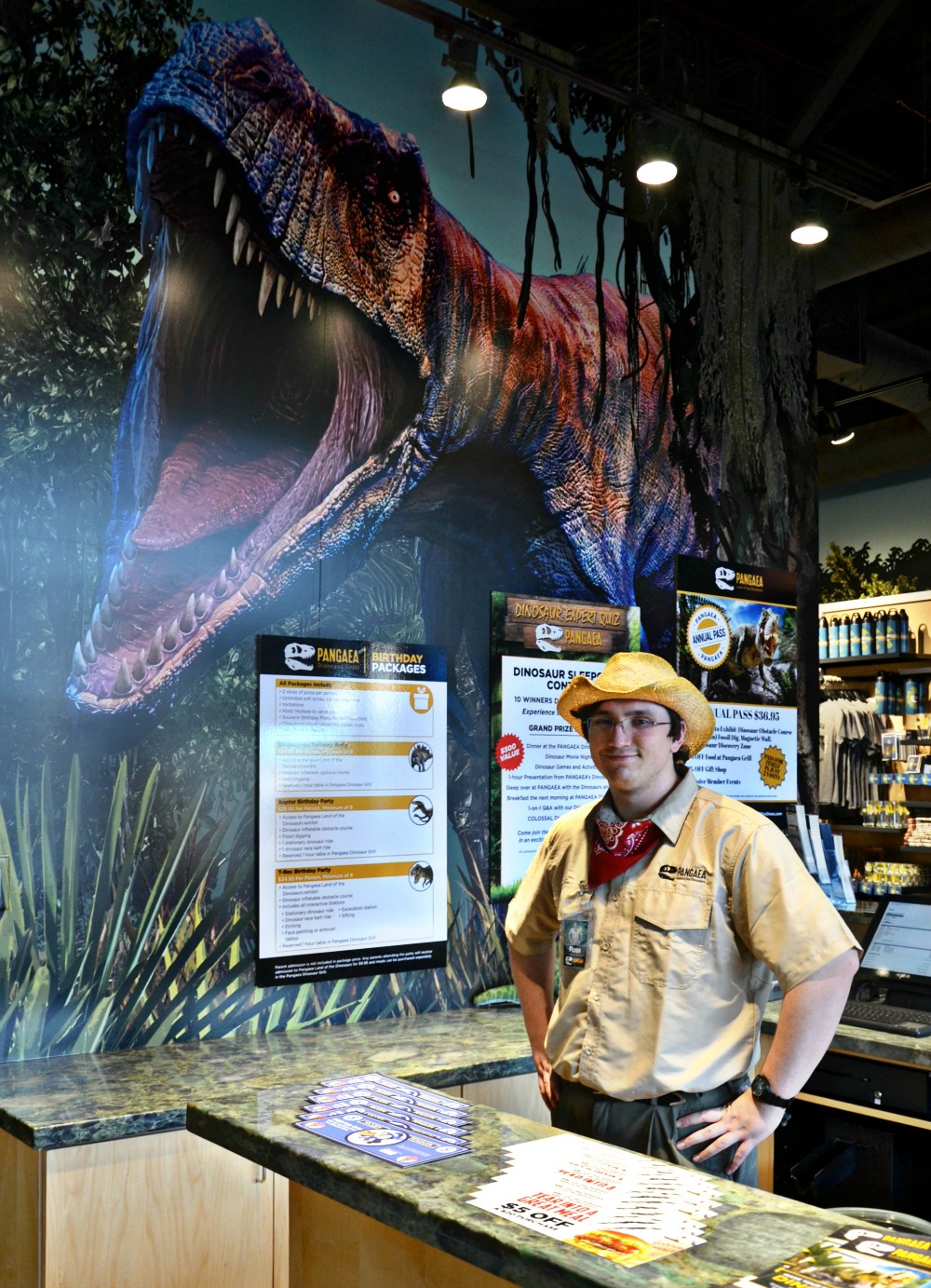 All Pangaea party packages include 2 slices of pizza per person and unlimited drinks at the Pangaea Dinosaur Grill located directly upstairs from the Land of the Dinosaurs.