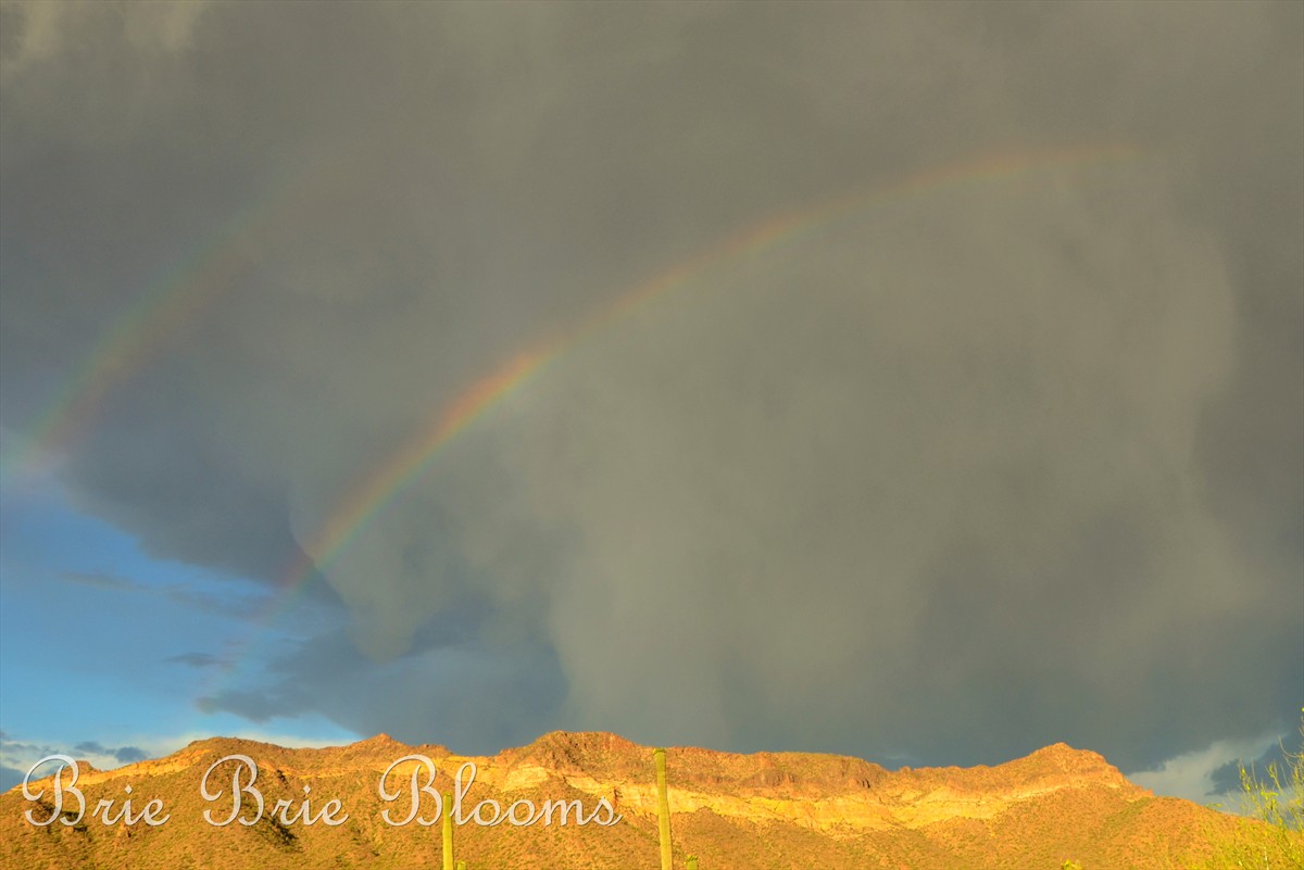 Just before we were leaving, my husband captured some amazing photos of the bright rainbow behind a tall cactus.