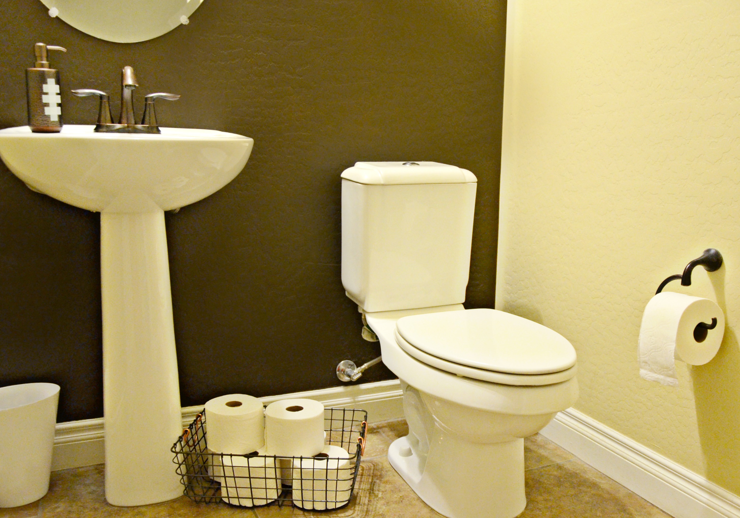 The updated guest bathroom decor is perfect for a Big Game party but we’ll keep the basket full of Mega Rolls in the bathroom for everyday use too. You never want your guests running out of bath tissue!