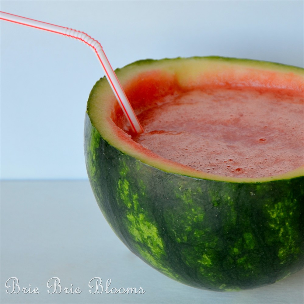 3) Pour smoothie into empty watermelon halves and add a straw.