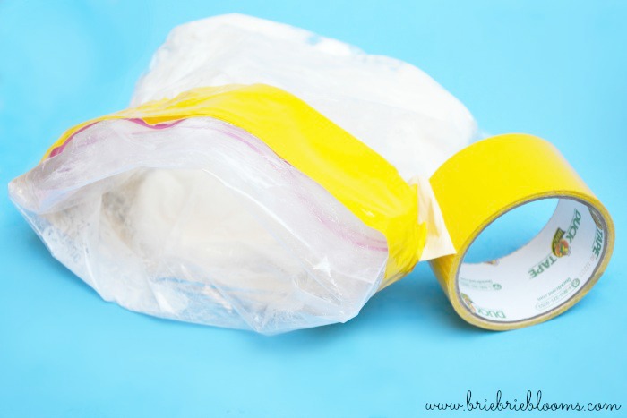 Then place the glove bag inside the bag with shortening. Fold the edges over and secure with duck tape.