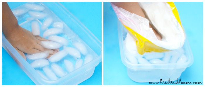 - icy water in a container large enough for little hands