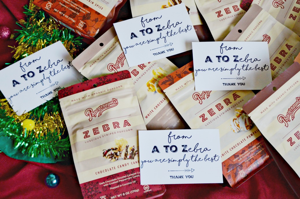 There’s something about a popcorn tin that really gets me into the holiday spirit. My grandmother loved popcorn and always had holiday tins in her home during this time of year. While I don’t enjoy stocking my kitchen pantry with large popcorn tins during the holidays, I do like gifting smaller popcorn packages. I’m sharing that little piece of my childhood by gifting Zebra® by Popcornopolis® with a printable thank you card to the many friendly faces we see almost daily during the holiday season but likely don’t get told often enough they are appreciated. AND we’re giving Zebra® popcorn away to you too so make sure you enter at the bottom of this post!